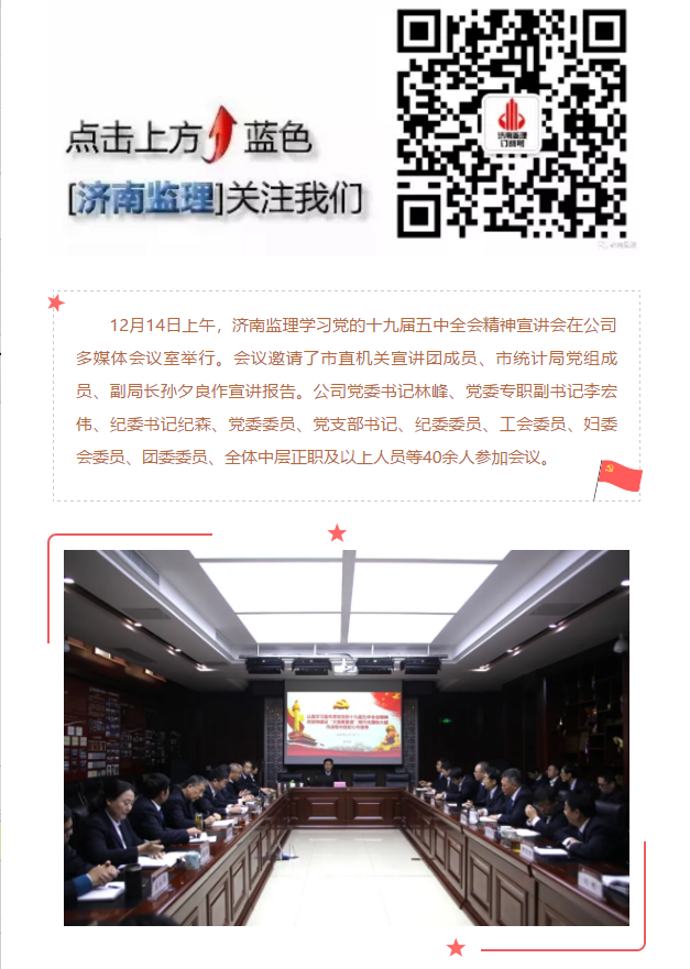 濟(jì)南監(jiān)理召開學(xué)習(xí)貫徹十九屆五中全會精神宣講會